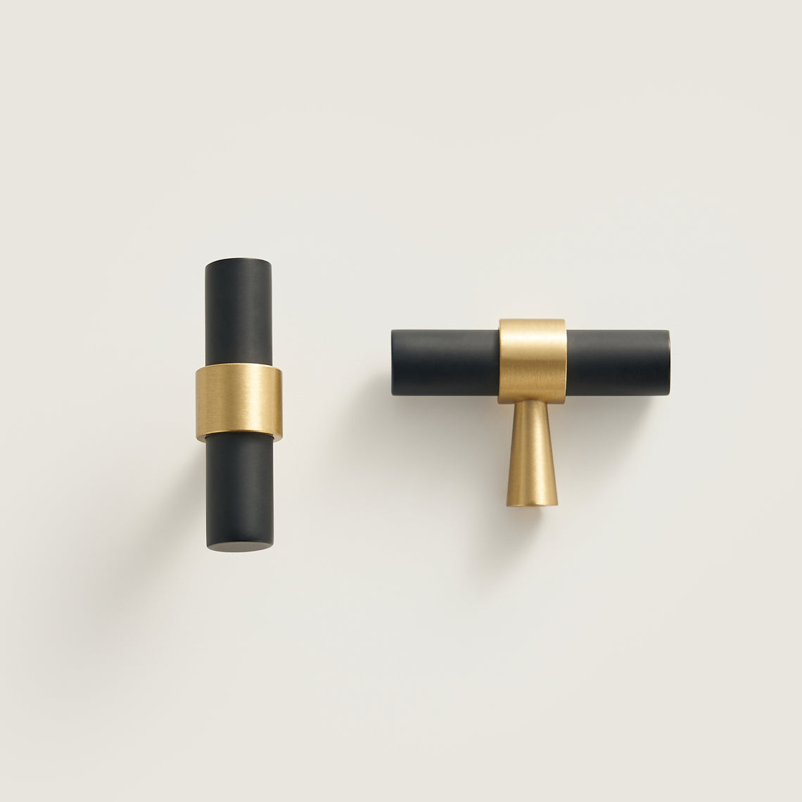 Stijlvol T-greep in massief messing in matzwarte afwerking met contrasterende geborstelde messing montage. Een detail dat echt wordt waargenomen in de kamer. De toepassingsgebieden zijn talrijk; voor de keukendeuren, de ladekast in de slaapkamer of het tv-meubel. Er staan ​​ook handgrepen uit dezelfde serie onder handvatten in het menu.
