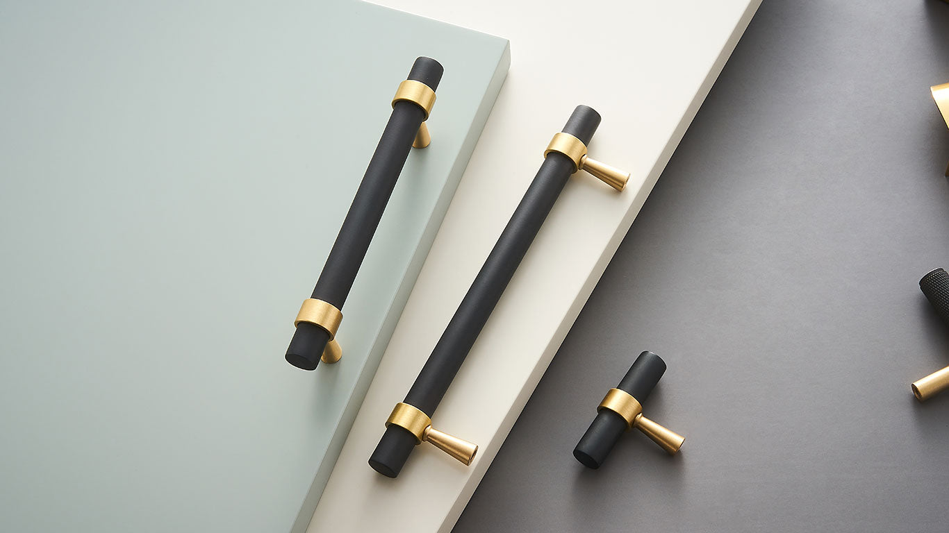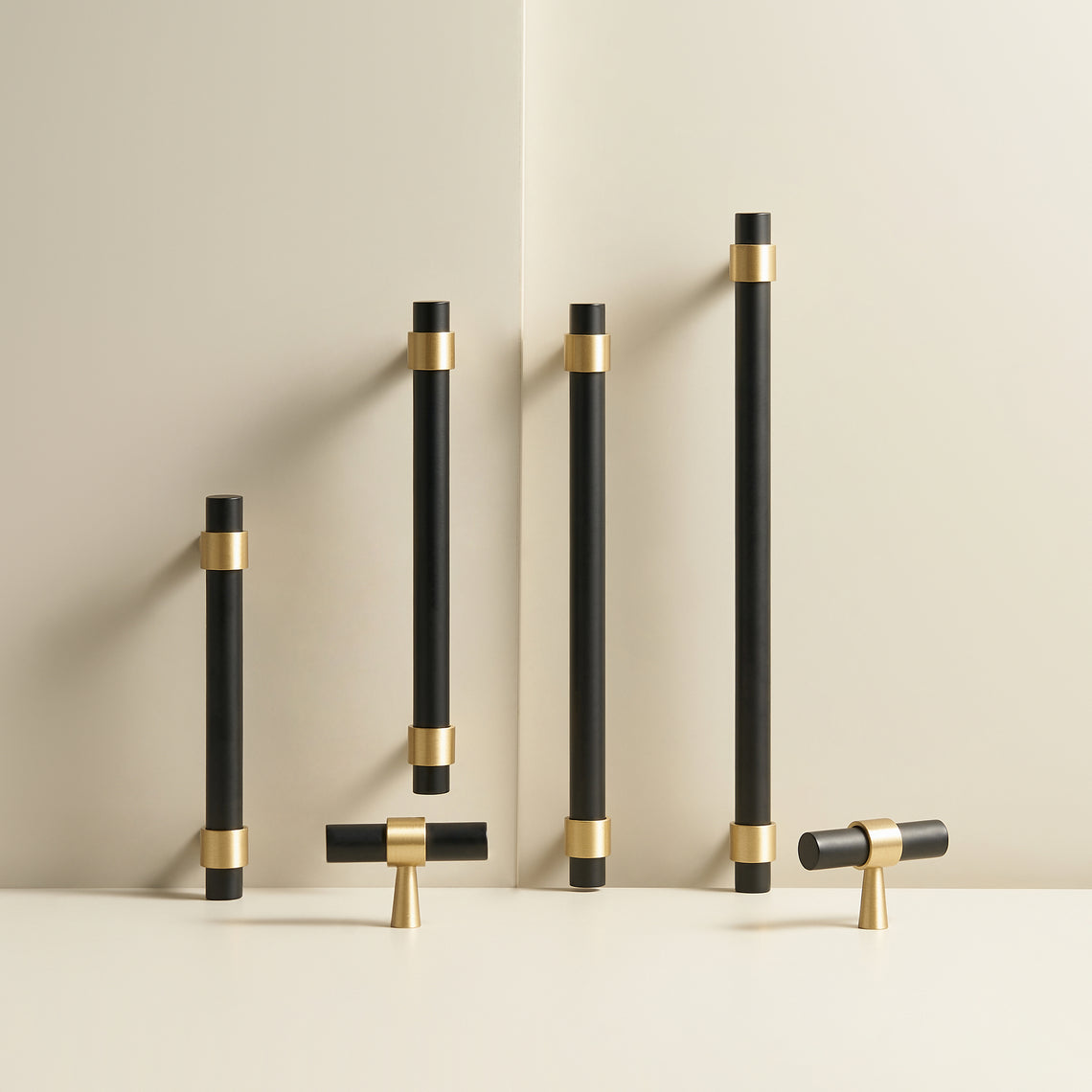 Elegant greb til køkkenlåger og møbler i solid messing med en sofistikeret mat sort finish og kontrasterende børstet messingmontering. Denne kombination af sort og messing skaber en moderne og tidløs følelse, der forstærker enhver indretning.... Læs mere