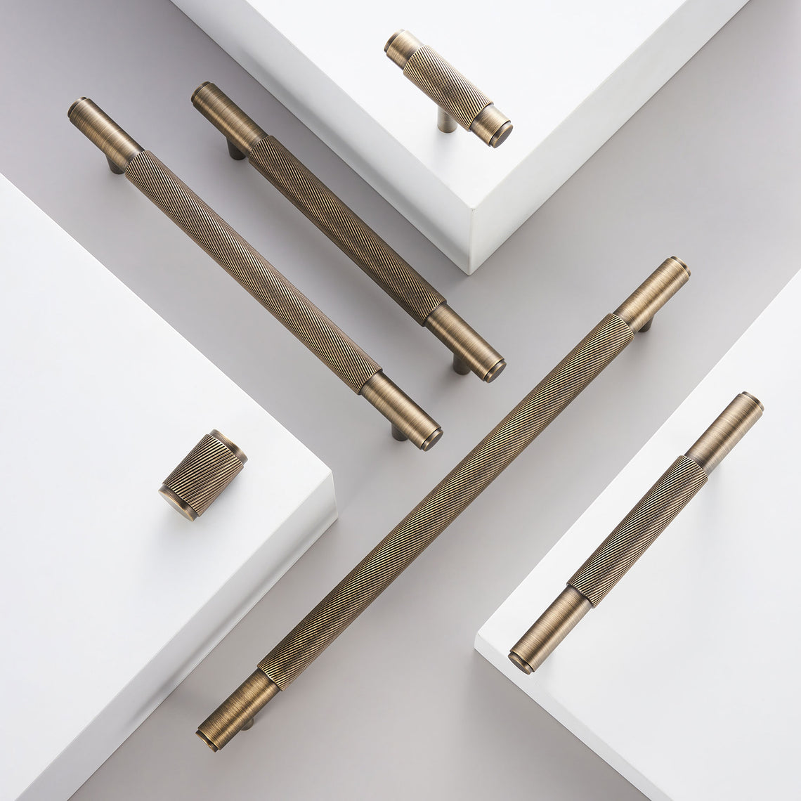 Griff aus massivem, gebürstetem Antikmessing mit eleganter gerillter Oberfläche – eines unserer beliebtesten Produkte! Dieser moderne Griff in Antikmessing kombiniert Stil und Funktionalität und ist die perfekte Lösung für Küchenschränke, Badezimmerschränke und Möbel. Sein robustes Gewicht und die sorgfältig ausgearbeiteten gerillten Details verleihen ihm eine markante und exklusive Ausstrahlung, die nicht unbemerkt bleibt. Dieser Premiumgriff ist für diejenigen entworfen, die Qualität und ein detailliertes Design schätzen, das sowohl das Aussehen als auch das Gefühl in Ihrem Zuhause verbessert.