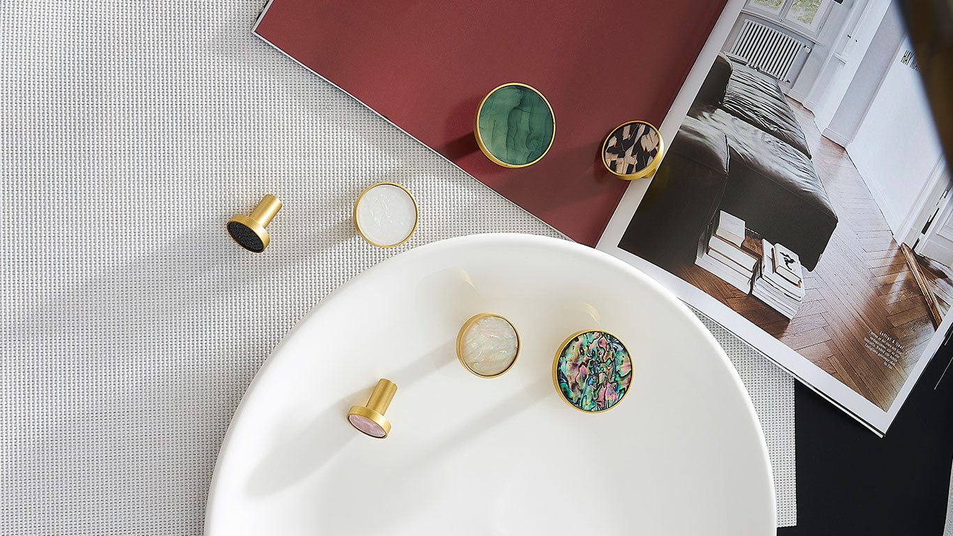 Haken 1052 | Messing + Abalone Shell Haken 1052 | Messing + Seladongrün Haken 1052 | Messing + Colourful Shell Haken 1052 | Messing + Pfirsichrosa Haken 1052 | Messing + Schwarz/Weiss Gepunktet
