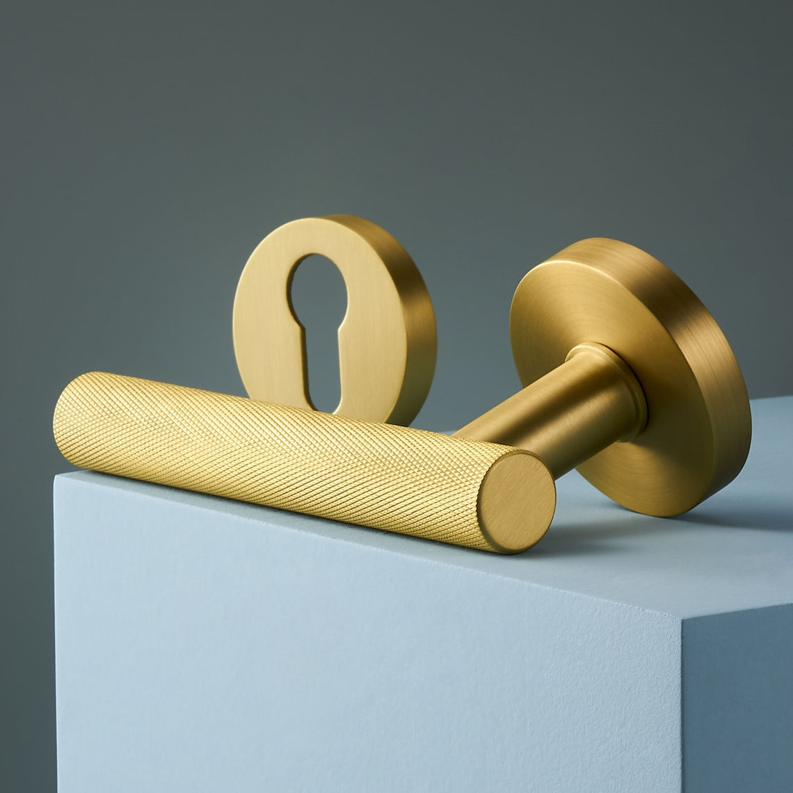 Anna sisäovillesi uusi ilme tällä eksklusiivisella sisäoven kahvalla, joka on valmistettu kiinteästä messingistä. Uritettu tartuntapinta tuo kahvaan sekä tyyliä että luonteen, samalla kun se luo modernin ja elegantin tunnelman kotiisi. Yhdistä yhteensopiviin kiinnikkeisiin tai nuppeihin muista sarjoistamme saadaksesi kauniin kokonaisuuden.