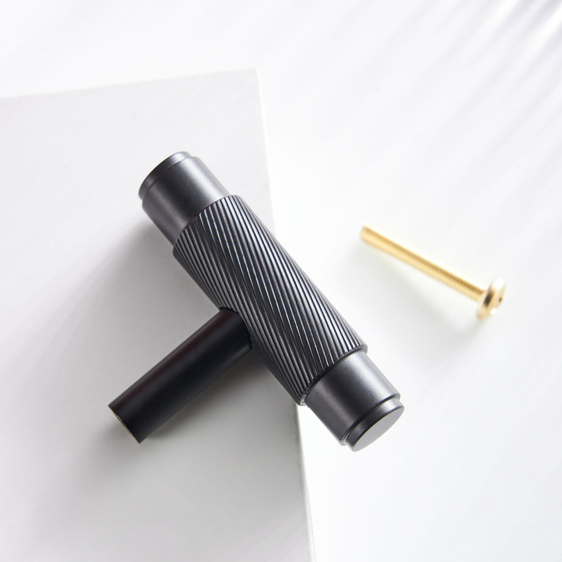 Barra a T in ottone massiccio con superficie zigrinata. Perfetta per ante da cucina, mobiletti da bagno o mobili. La sua solidità, unita ai dettagli zigrinati, conferisce un aspetto esclusivo che non passa inosservato. Realizzata in ottone massiccio, trattata con un rivestimento protettivo per una finitura impeccabile e una superficie durevole.