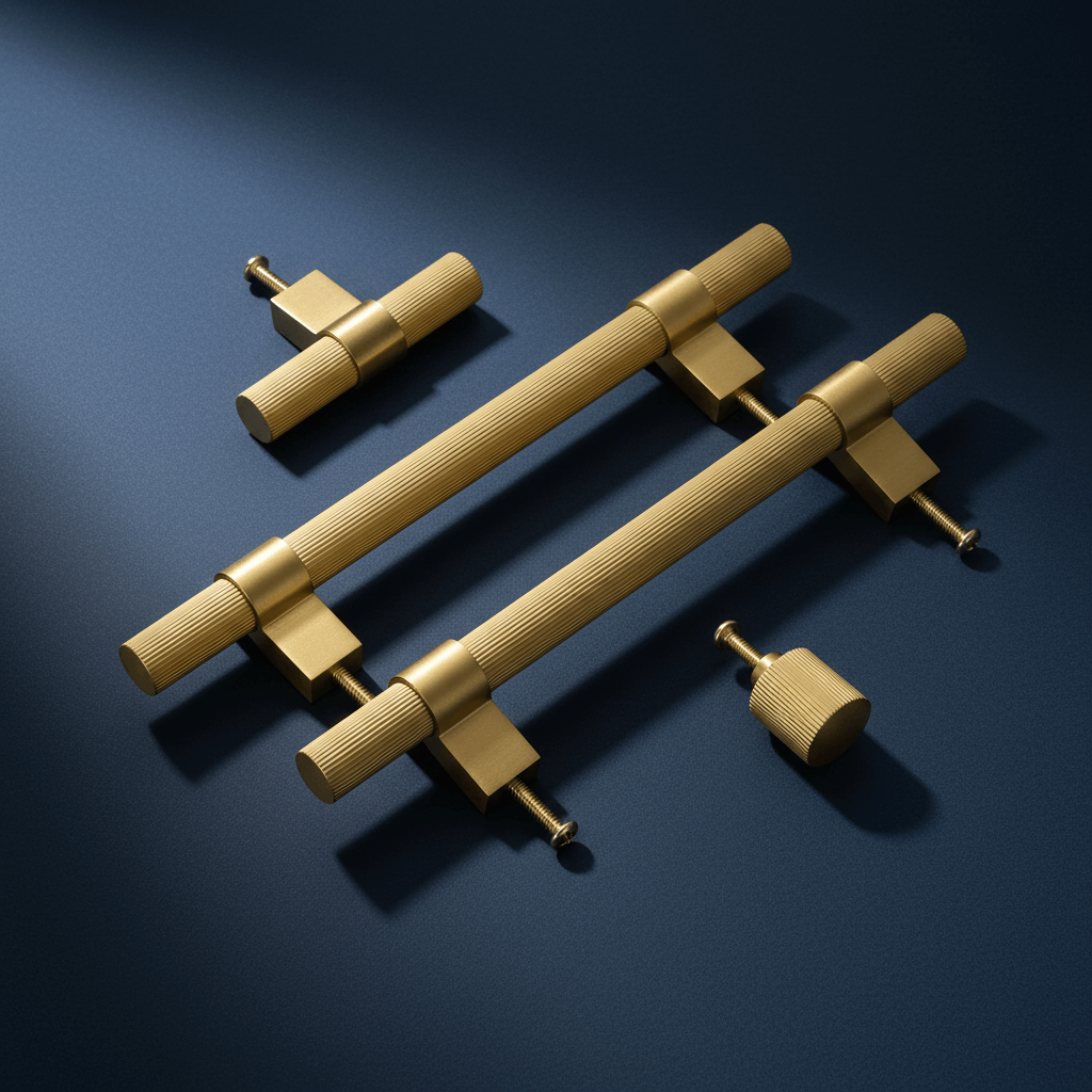 Mässingshandtag för köksluckor eller möbler tillverkat i solid mässing i räfflat industriellt utförande. Stilrent handtag som är linjerat hela handtagets längd med kvadratisk infästningsplatta i borstat utförande. Passar väl in i moderna kök där linjer och stilrenhet går hand i hand. Handtaget är tillverkat i solid mässing som sedan behandlats med en coating för att få sin fulländade finish och en skyddande yta. Kombinera gärna med knoppar eller T-bars i serien 3138 för en fulländad look.